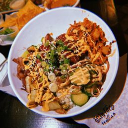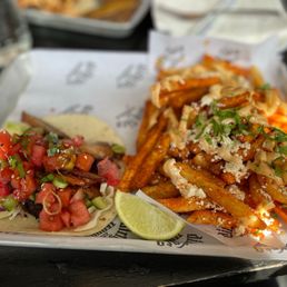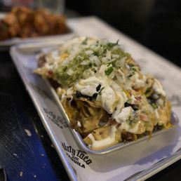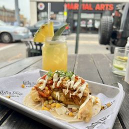 The food is great- tacos are super filing; the baja fish taco is my favorite! The korean bbq taco is the most popular but it's veryyyy sweet. I'd recommend the korean nachos to share with the table, it was good enough for 4 adults (and we still couldn't finish it). Good place to grab a drink with friends! The inside is pretty loud - so I wouldn't recommend if you are looking to talk/have conversations. Service is pretty good!